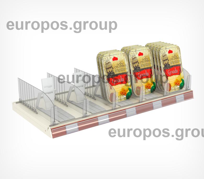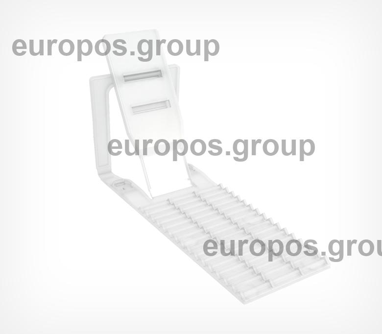 Пластиковая задняя опора FLEX-BACK имеет удлиненную переднюю ребристую часть для увеличенной загрузки товарами. Спинка опоры имеет два положения наклона: 60° и 80°. Для более плотного крепления на полке возможна установка демпферов (поставляются отдельно). Для фиксации на металлических полках может быть укомплектована магнитами (поставляются отдельно).