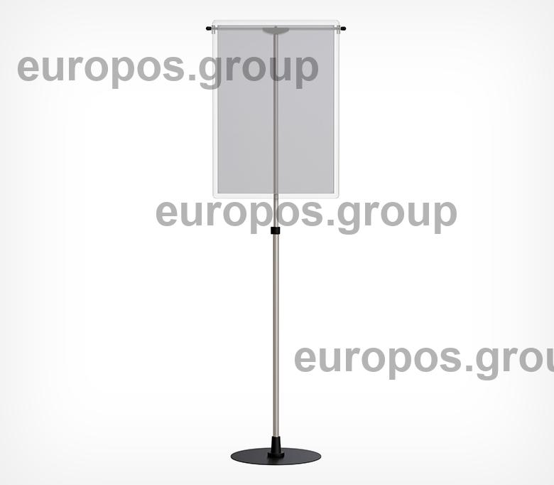 Рекламная стойка имеет устойчивое основание, а также регулируется по высоте с 1000 до 1950 мм за счет наличия телескопической трубки.