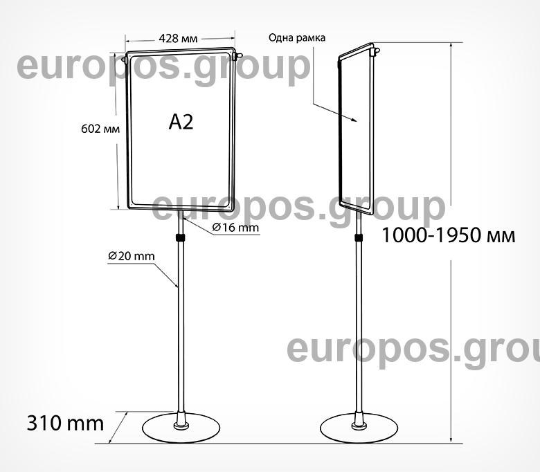 Стойка укомплектована прозрачной рамкой PF А2 формата. Легкая замена печатных носителей.