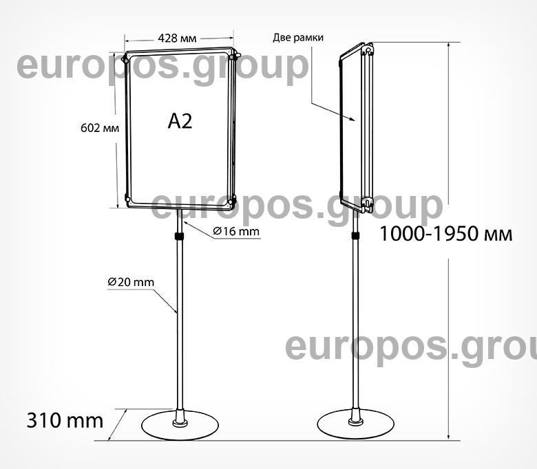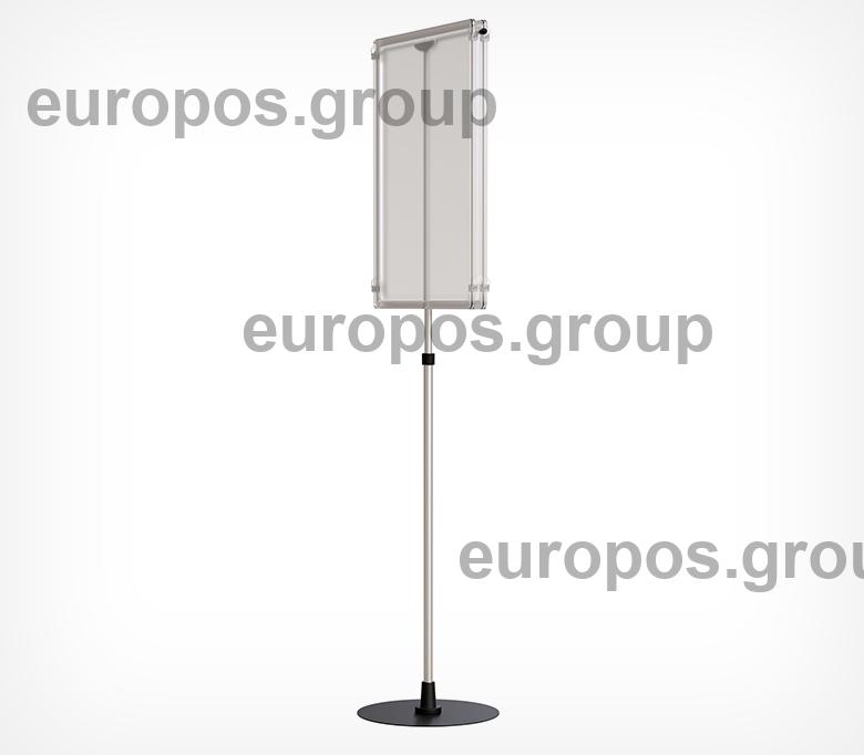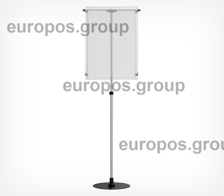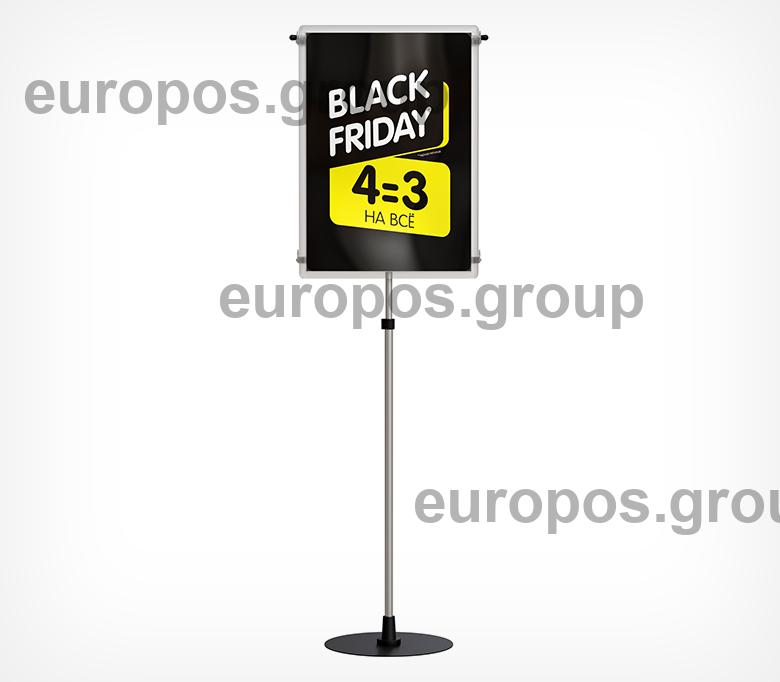 Рекламная стойка имеет устойчивое основание, а также регулируется по высоте с 1000 до 1950 мм за счет наличия телескопической трубки.