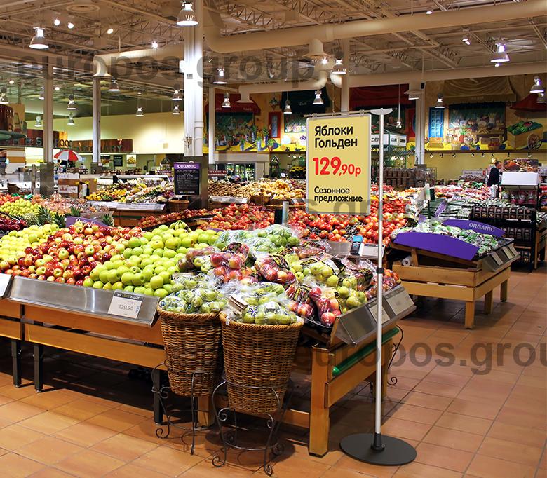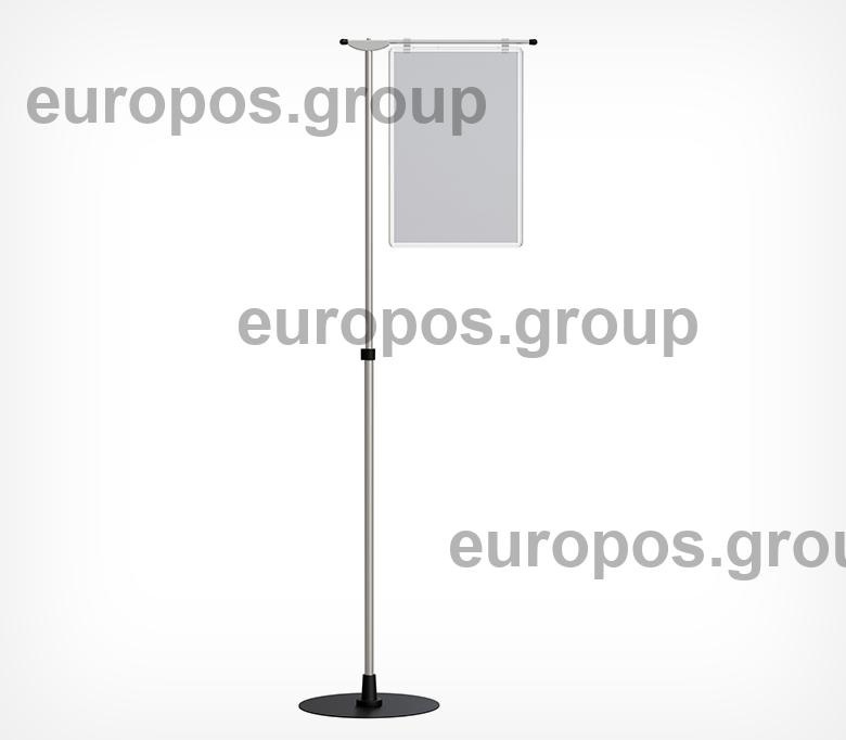 Стойка телескопическая рекламная Г-образная применяется в зонах распродаж, «островных» и паллетных выкладках товара для привлечения внимания к акционной, рекламной и любой другой информации.