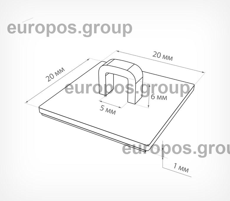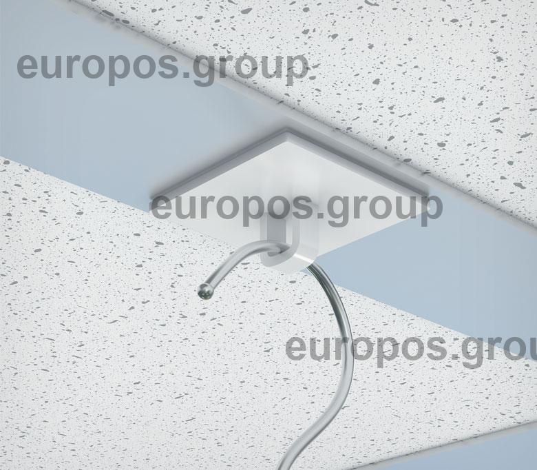 Квадратное потолочное крепление на двухстороннем скотче для подвешивания мобайлов, вывесок, плакатов. Изготовлено литьевым методом, имеет прочную петлю для подвесов.