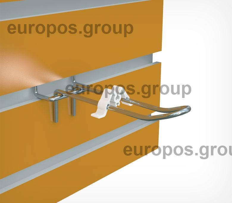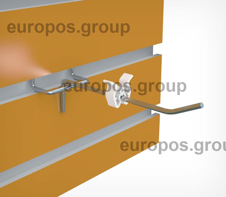 Ограничитель товара предназначен для фиксации товара на крючках при транспортировке дисплея, а также для ограничения рабочей длины крючка. Подходит для двойных и одинарных крючков. Стандартный цвет - белый.