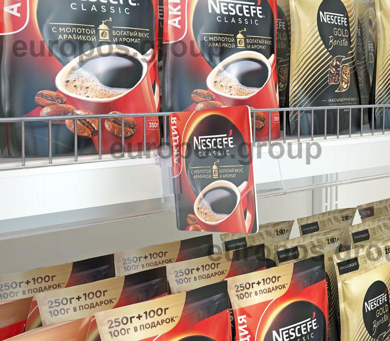 Прямой поперечный захват предназначен для крепления вывесок на всех типах стандартных ценникодержателей. Для вывесок толщиной от 0,5 до 3 мм.