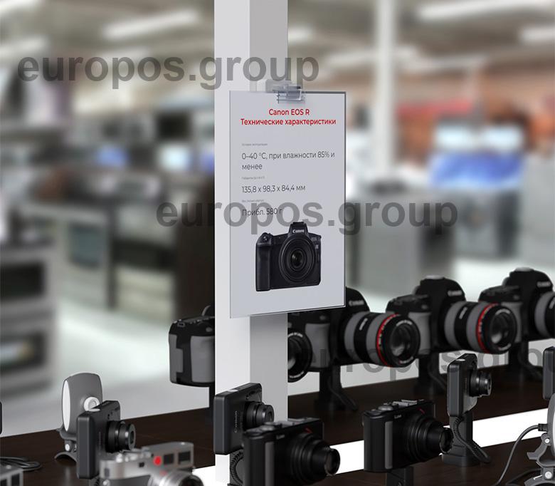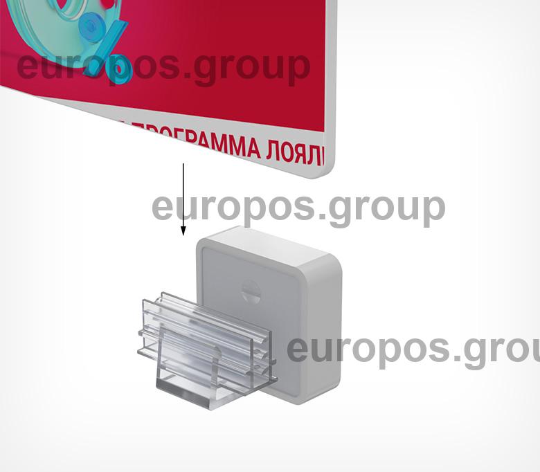 Предназначен для информационных вставок толщиной 0,2-3 мм. Крепкая фиксация вставки в держателе позволяет обойтись без отверстий и клипс.