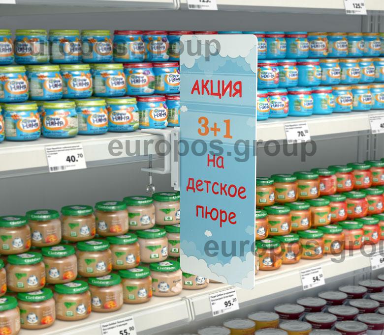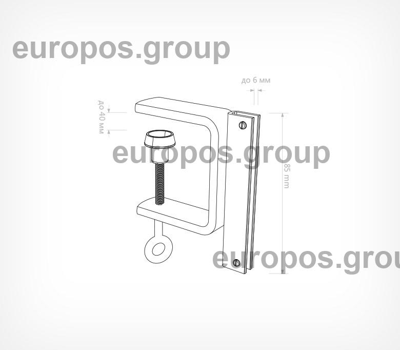 Струбцина с металлическим П-держателем позволяет крепить вывески к полкам толщиной до 40 мм. Металлический П-держатель длиной 85 мм обеспечивает надежное крепление носителей из картона и пластика толщиной от 0,5 мм до 5 мм.